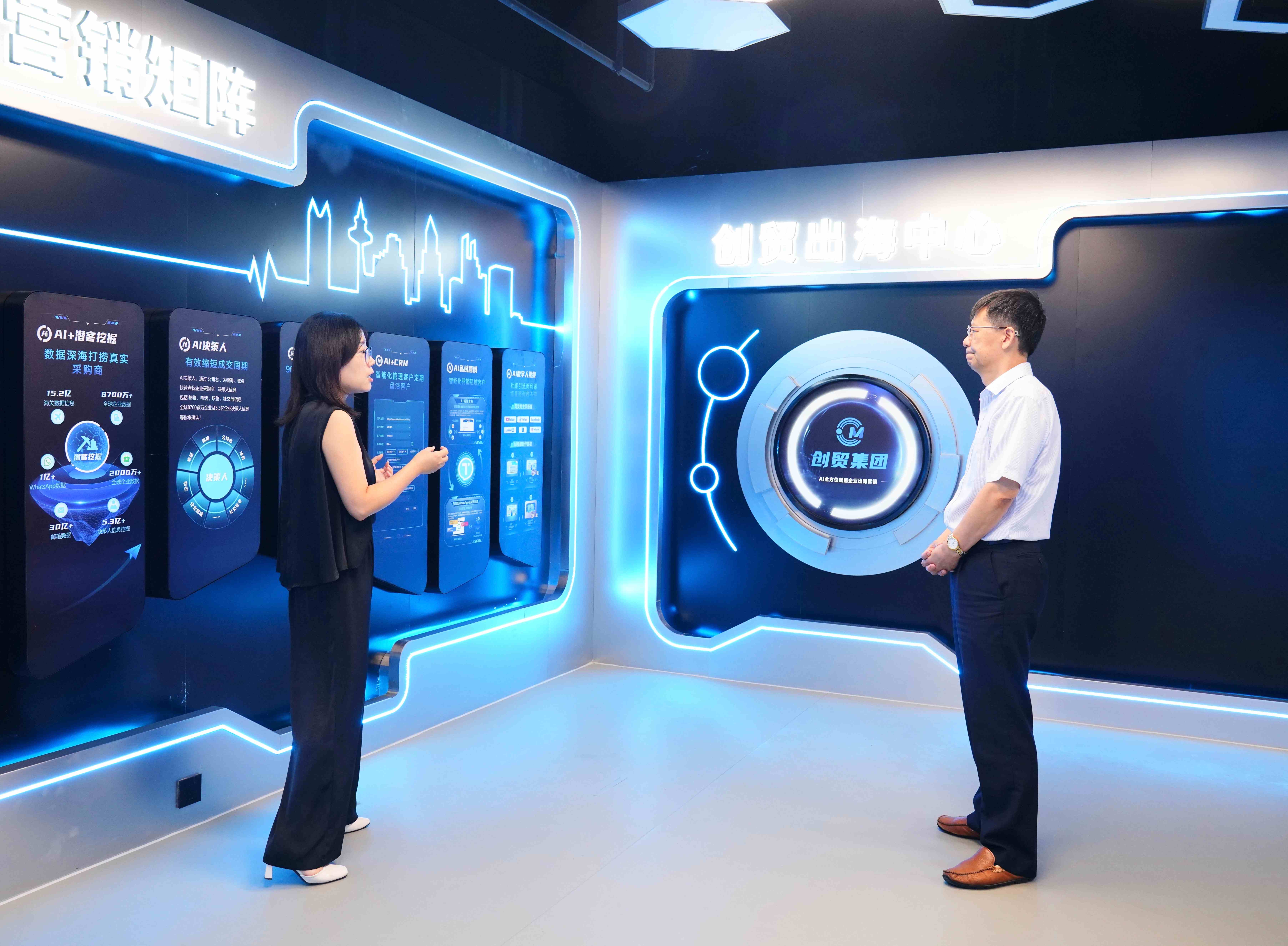 在創(chuàng)貿(mào)出海中心(南通)的數(shù)字化展廳內(nèi),領(lǐng)導(dǎo)一行沉浸式體驗了集團助力外貿(mào)企業(yè)實現(xiàn)業(yè)績突破的全鏈路AI技術(shù)矩陣。從智能挖掘全球采購線索的超跡AI系統(tǒng),到基于大數(shù)據(jù)分析的客戶精準(zhǔn)畫像工具,再到能自動生成多語種營銷內(nèi)容的AI數(shù)字人平臺,每一項技術(shù)應(yīng)用都直指外貿(mào)企業(yè) “獲客成本高、轉(zhuǎn)化效率低、市場響應(yīng)慢” 的痛點。