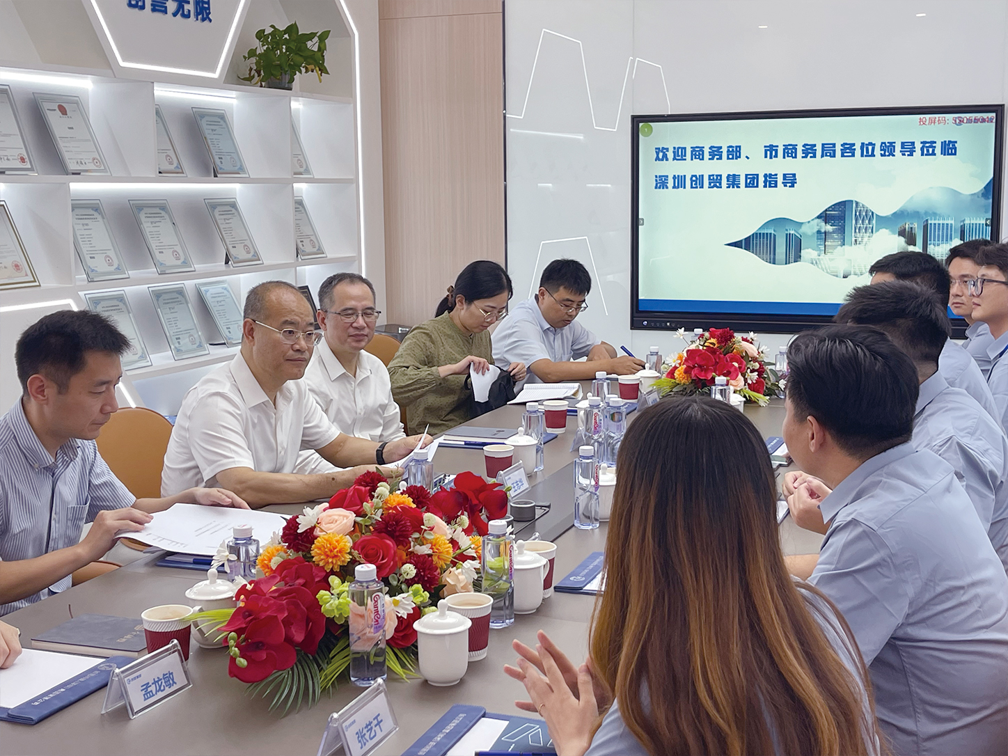 8月21日下午,商務(wù)部外貿(mào)司司長(zhǎng)王志華帶隊(duì)蒞臨創(chuàng)貿(mào)集團(tuán)深圳總部調(diào)研指導(dǎo),深入了解企業(yè)發(fā)展現(xiàn)狀及業(yè)務(wù)模式。創(chuàng)貿(mào)集團(tuán)CEO蒲競(jìng)超攜企業(yè)高層熱情接待。