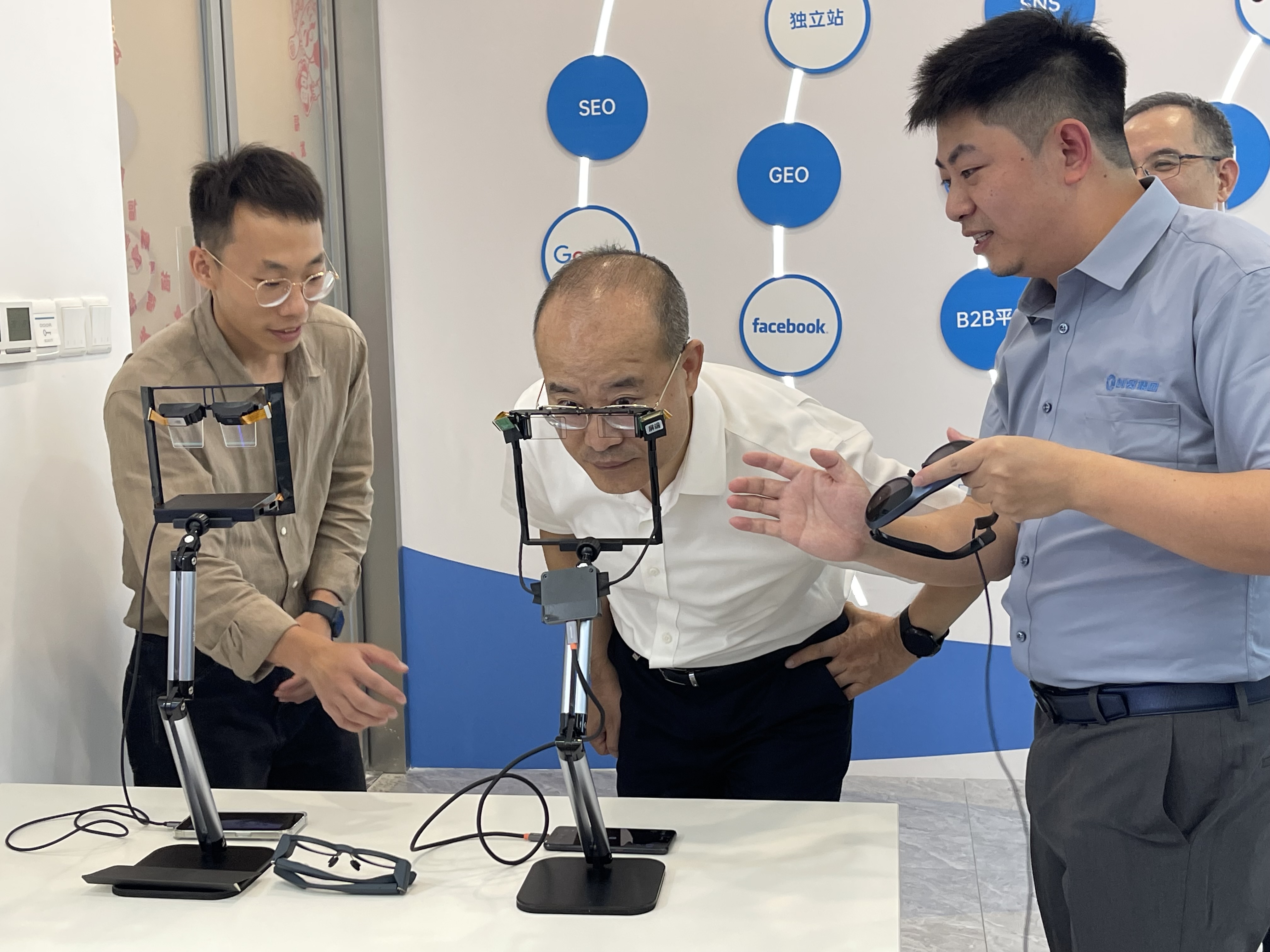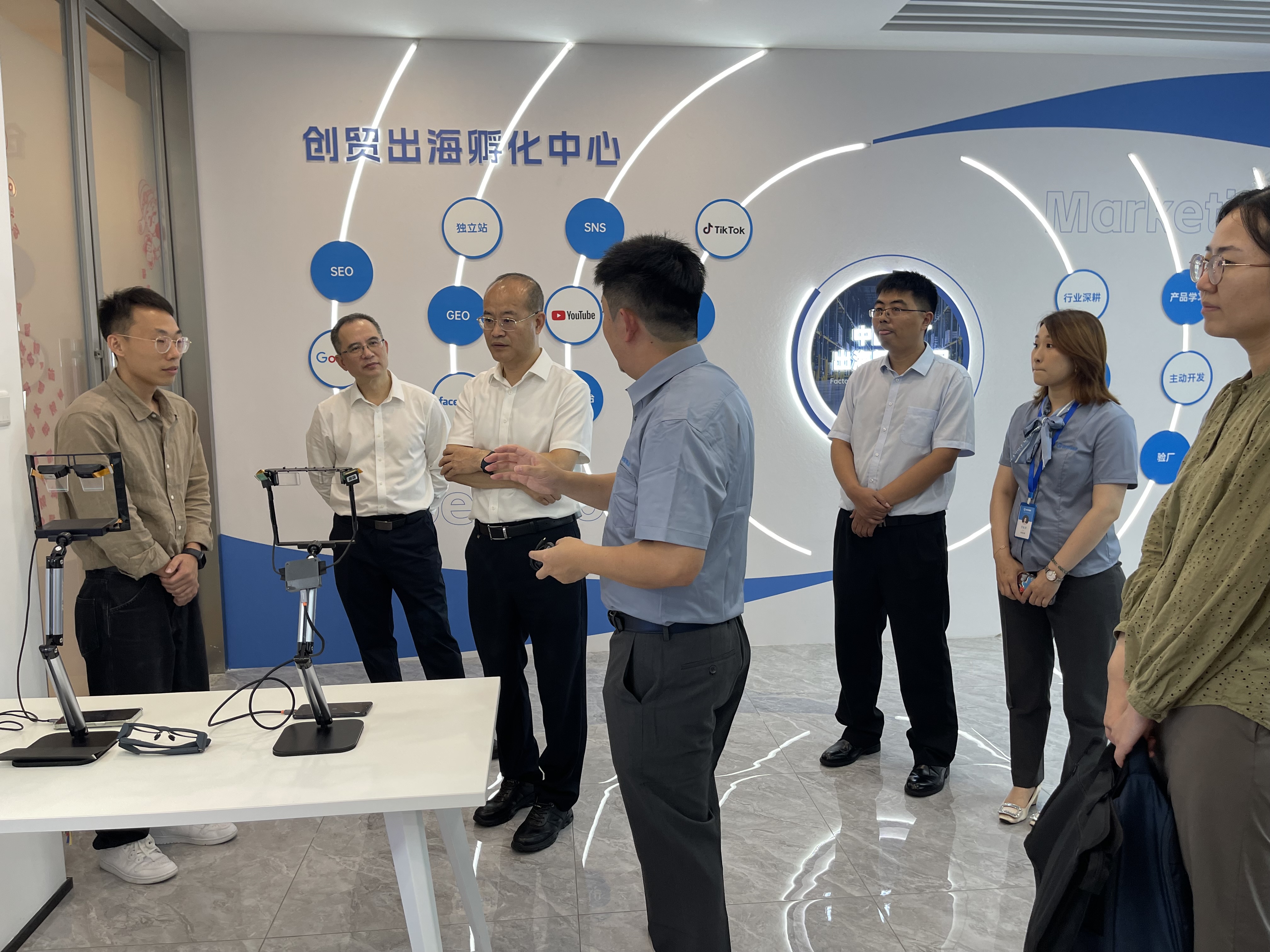 參訪現(xiàn)場(chǎng),蒲競(jìng)超陪同王司長(zhǎng)一行先后參觀了企業(yè)發(fā)展歷程展示區(qū)、外貿(mào)數(shù)字化服務(wù)案例長(zhǎng)廊及出海孵化中心。過(guò)程中,蒲競(jìng)超詳細(xì)講解了AI人工智能在助力外貿(mào)企業(yè)降本增效、開拓新興市場(chǎng)等場(chǎng)景中的創(chuàng)新應(yīng)用 —— 從智能分析采購(gòu)需求實(shí)現(xiàn)精準(zhǔn)匹配,到高效生成符合目標(biāo)市場(chǎng)語(yǔ)言習(xí)慣與文化背景的多語(yǔ)種營(yíng)銷材料,生動(dòng)展現(xiàn)了技術(shù)賦能外貿(mào)的實(shí)踐成果。